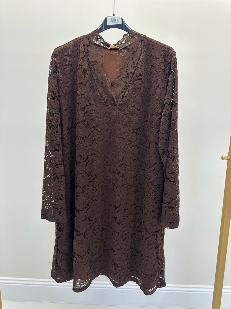 Robe droite en dentelle chocolat – Élégance intemporelle grande taille