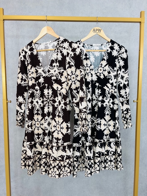 Féminine et fluide, cette robe en viscose séduit par son imprimé floral contrasté qui met en valeur la silhouette. Son décolleté en V et sa coupe évasée apportent élégance et confort au quotidien.