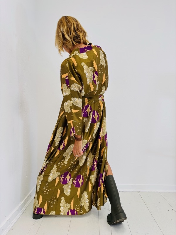 Une robe fluide et élégante qui associe confort et originalité grâce à son imprimé artistique.