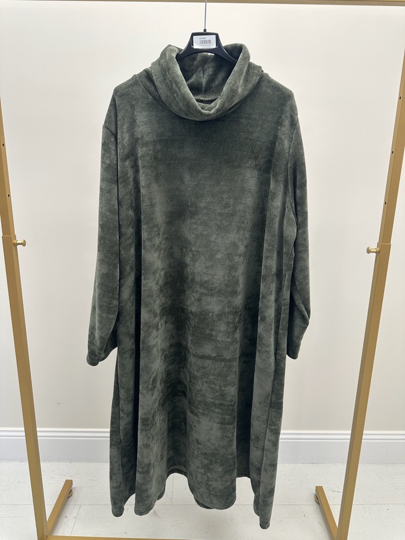 Robe longue grande taille col montant – Élégance sobre et confort cocooning