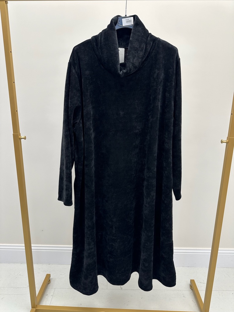 Robe longue velours ras col montant – Élégance sobre et confort cocooning