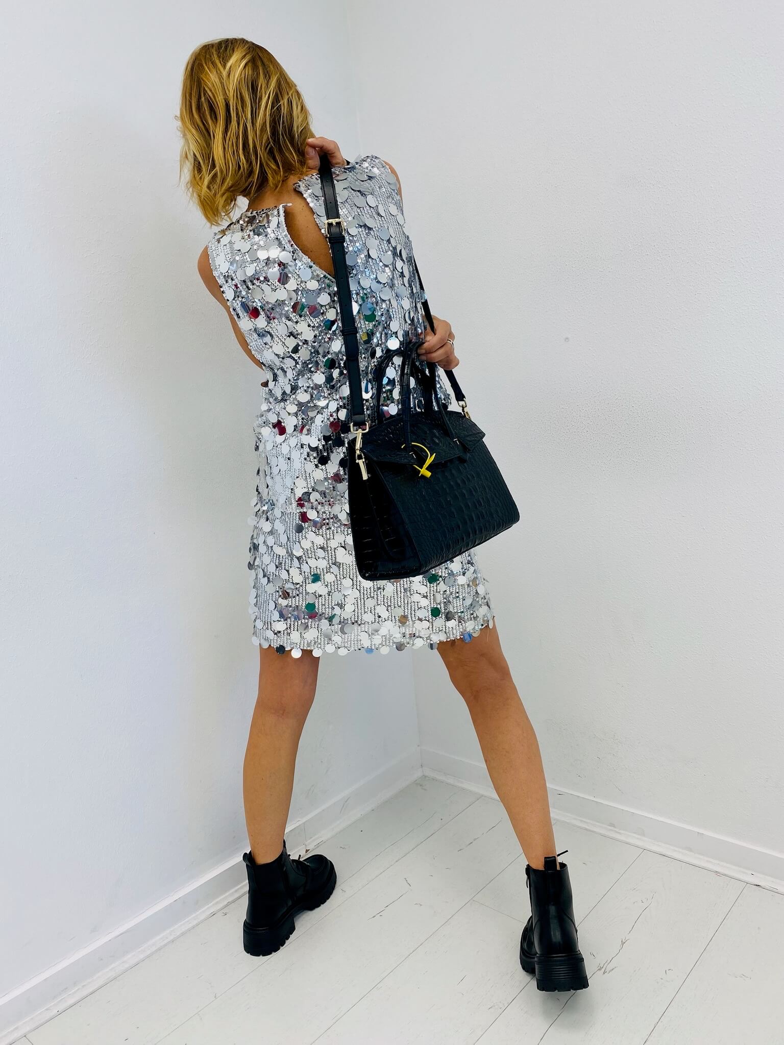 Deux anses rigides permettent un porté main raffiné, tandis qu’une bandoulière amovible offre une option porté épaule ou croisé selon vos envies.
