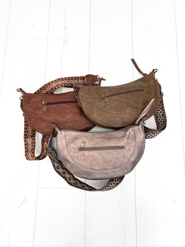 Pratique et tendance, ce sac bandoulière adopte une forme demi-lune moderne qui s’adapte à tous les styles. Son format idéal permet de transporter vos essentiels du quotidien, tandis que sa bandoulière large et imprimée apporte une touche originale et confortable.