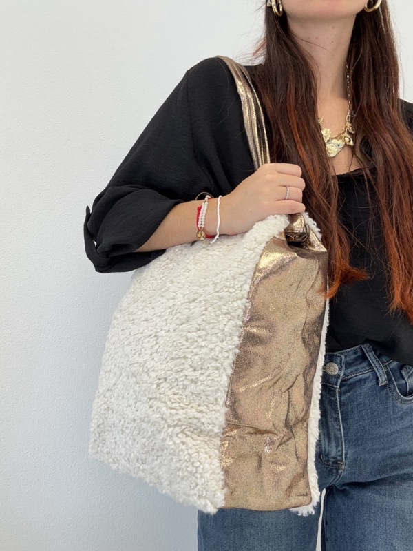 Sac Cabas effet Moumoute et Simili métallisé