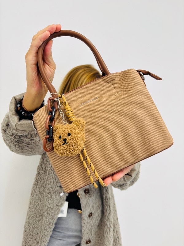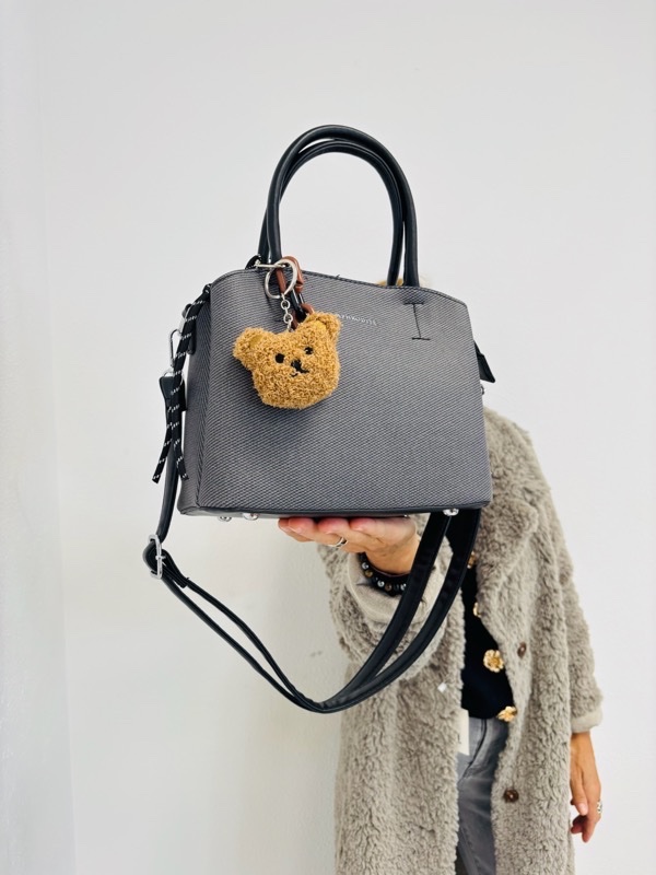 À la fois pratique et tendance, ce sac structuré est accompagné d’un porte-clés ourson en peluche qui apporte une touche fun et originale. Son format idéal permet de transporter vos essentiels tout en restant léger et élégant.