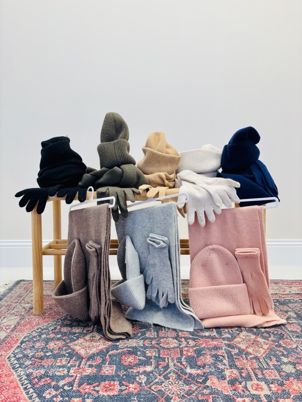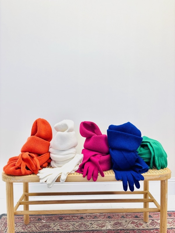 Set 3 pièces : bonnet, écharpe et gants assortis