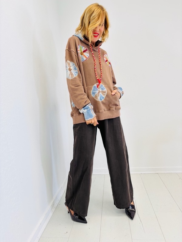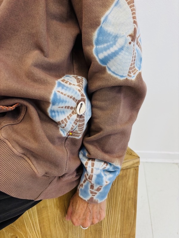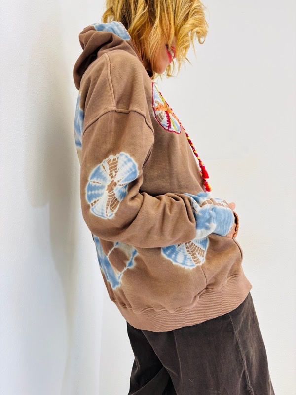 Un sweat original en 100% coton, au style bohème et moderne grâce à son imprimé tie & dye et ses détails brodés. Confortable et décontracté, il dispose d’une grande poche kangourou et d’une capuche pratique à cordons.
