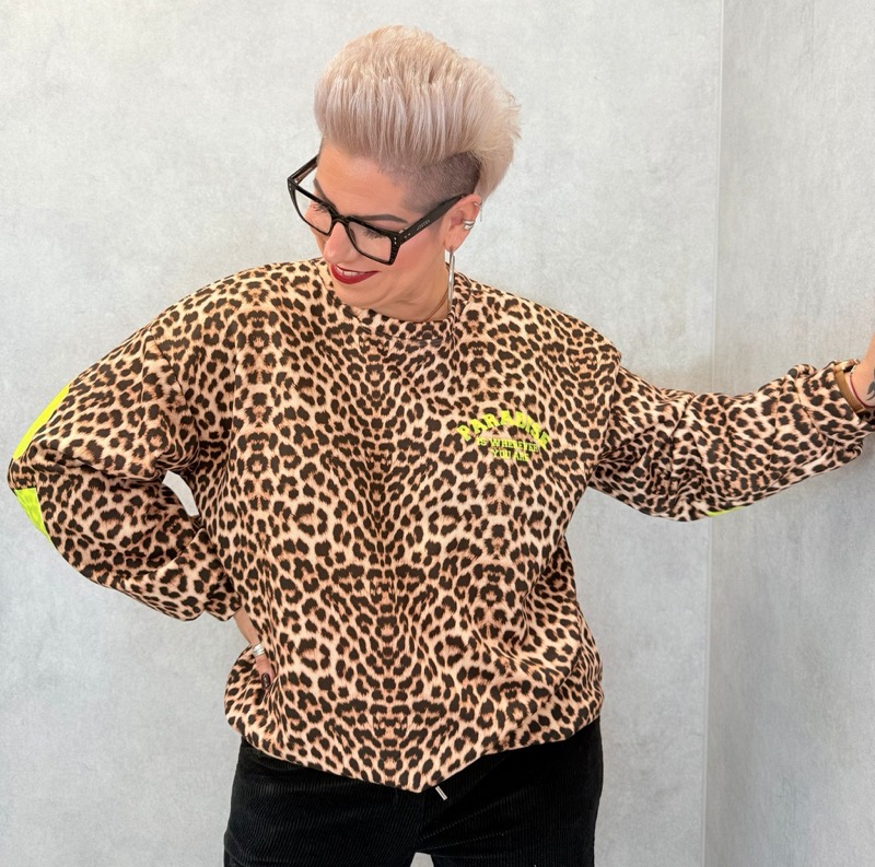 Sweat imprimé léopard détail rose – esprit wild & féminin