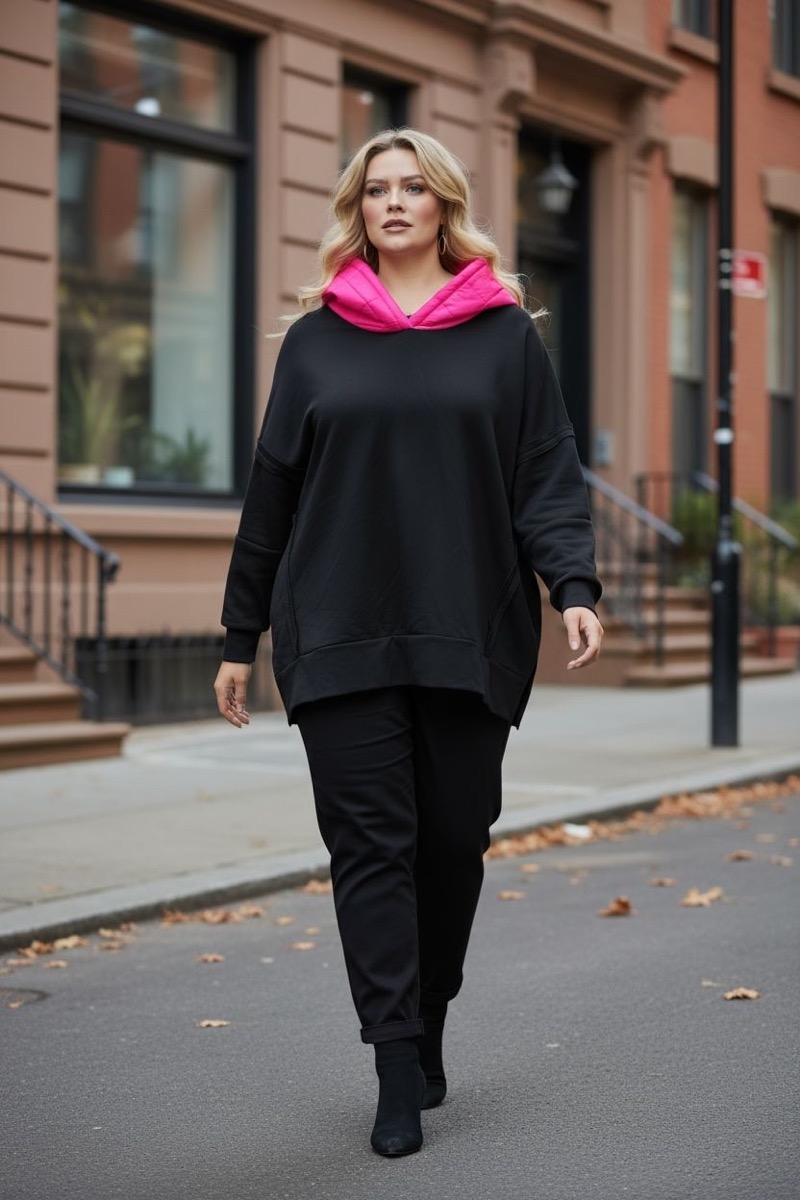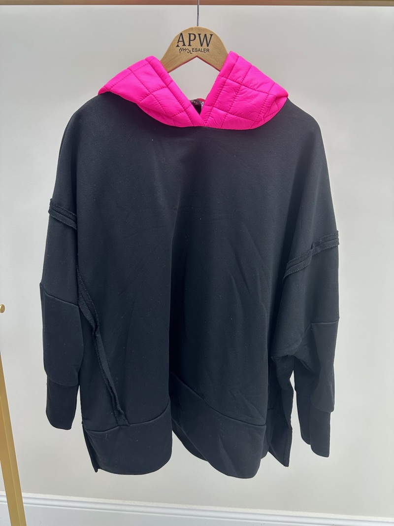 Sweat oversize à capuche matelassée rose fluo – Style urbain chic grande taille