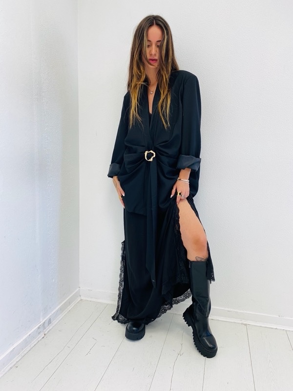 Une veste élégante et moderne qui met en valeur la silhouette grâce à sa ceinture intégrée avec boucle décorative. Sa coupe fluide et son col ouvert apportent une allure chic et féminine, idéale pour une tenue habillée comme décontractée.