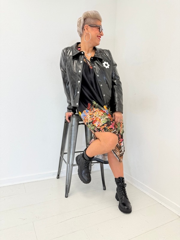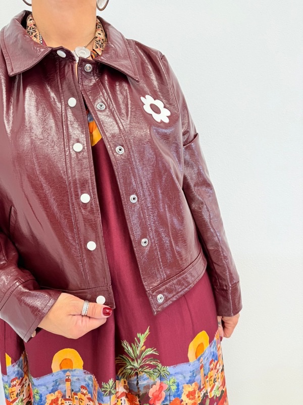 Veste effet vinyle fleur appliquée – Grande Taille