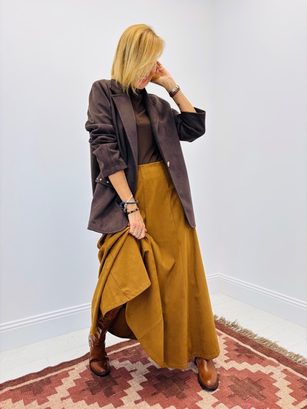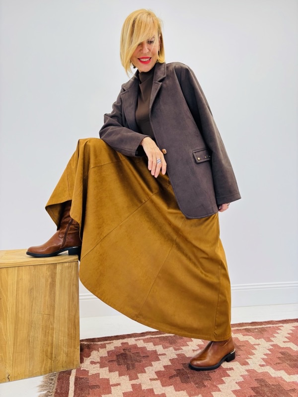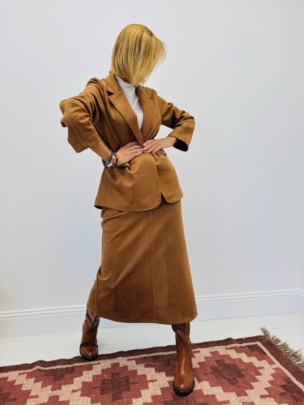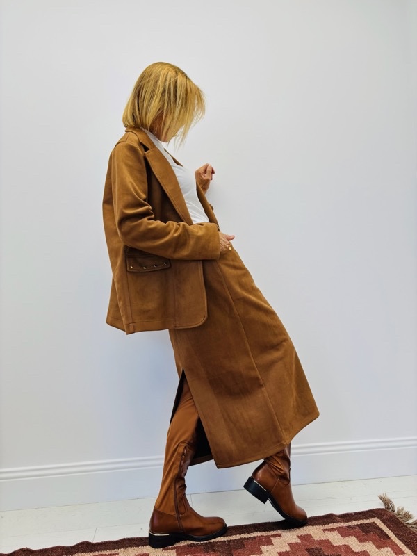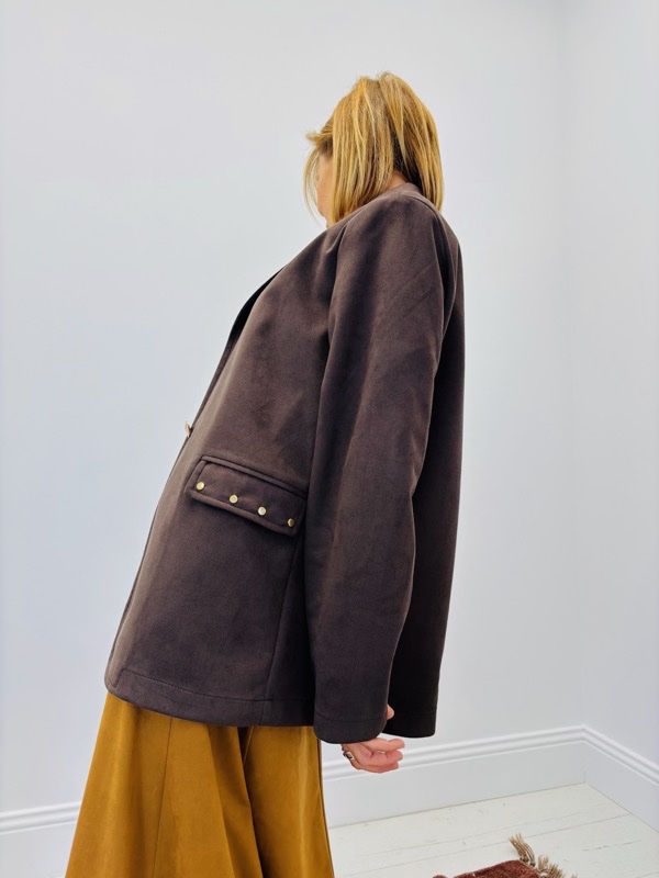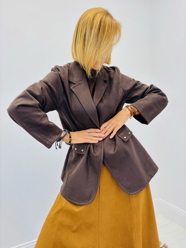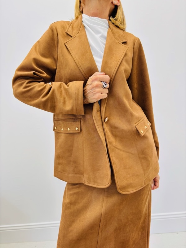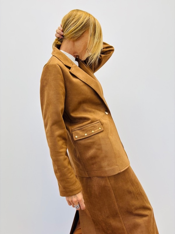 🤎 On aime : sa coupe blazer intemporelle alliée à la douceur de la suédine et sa fabrication française, gage de qualité.