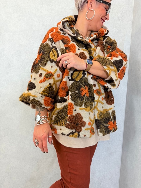 Apportez une touche de fantaisie et de confort à votre dressing d’hiver avec cette superbe veste à imprimé floral. Sa texture douce façon laine bouillie offre chaleur et style, tandis que sa coupe ample assure un tombé fluide et confortable, parfait pour les silhouettes du 44 au 52.