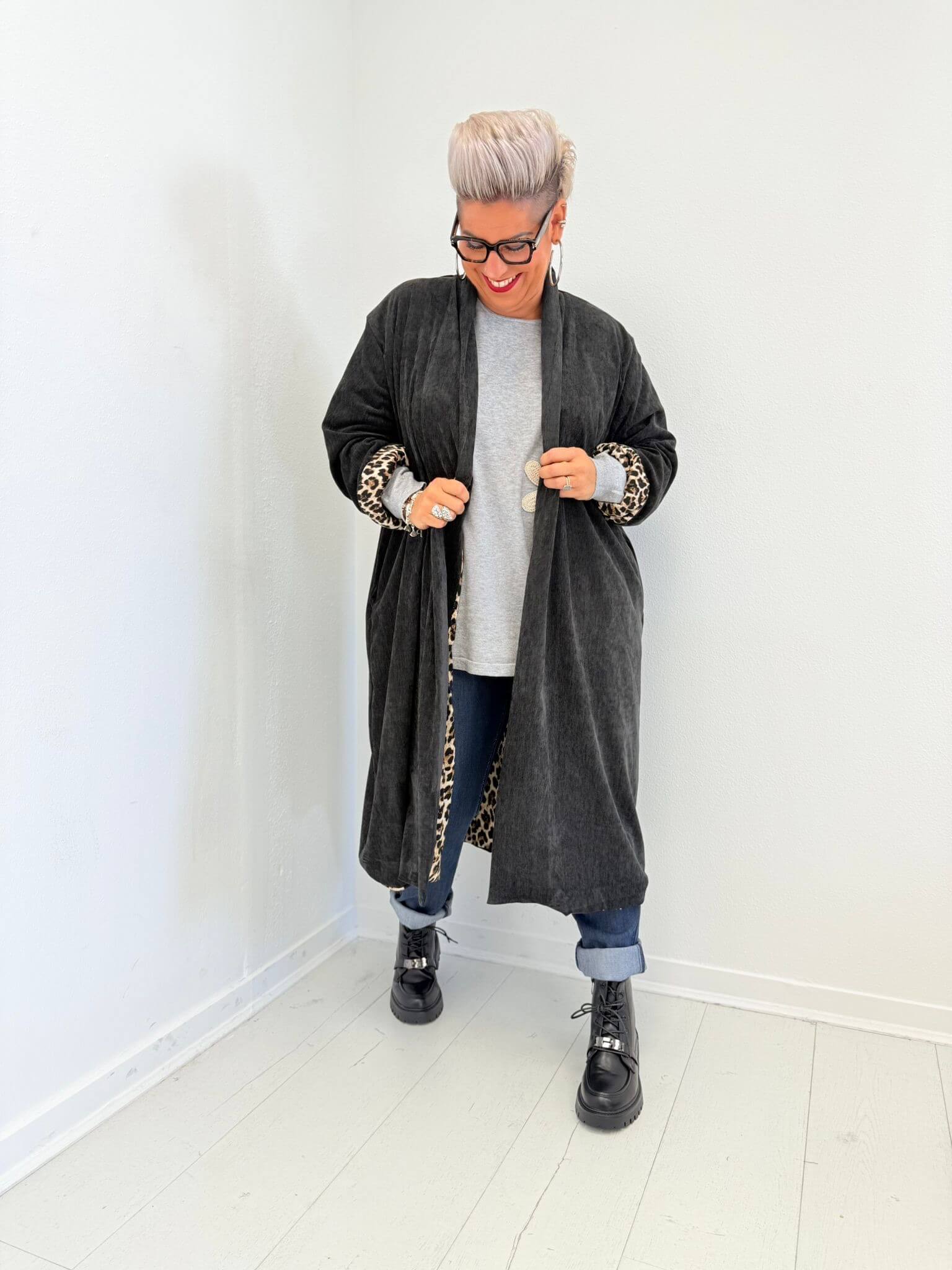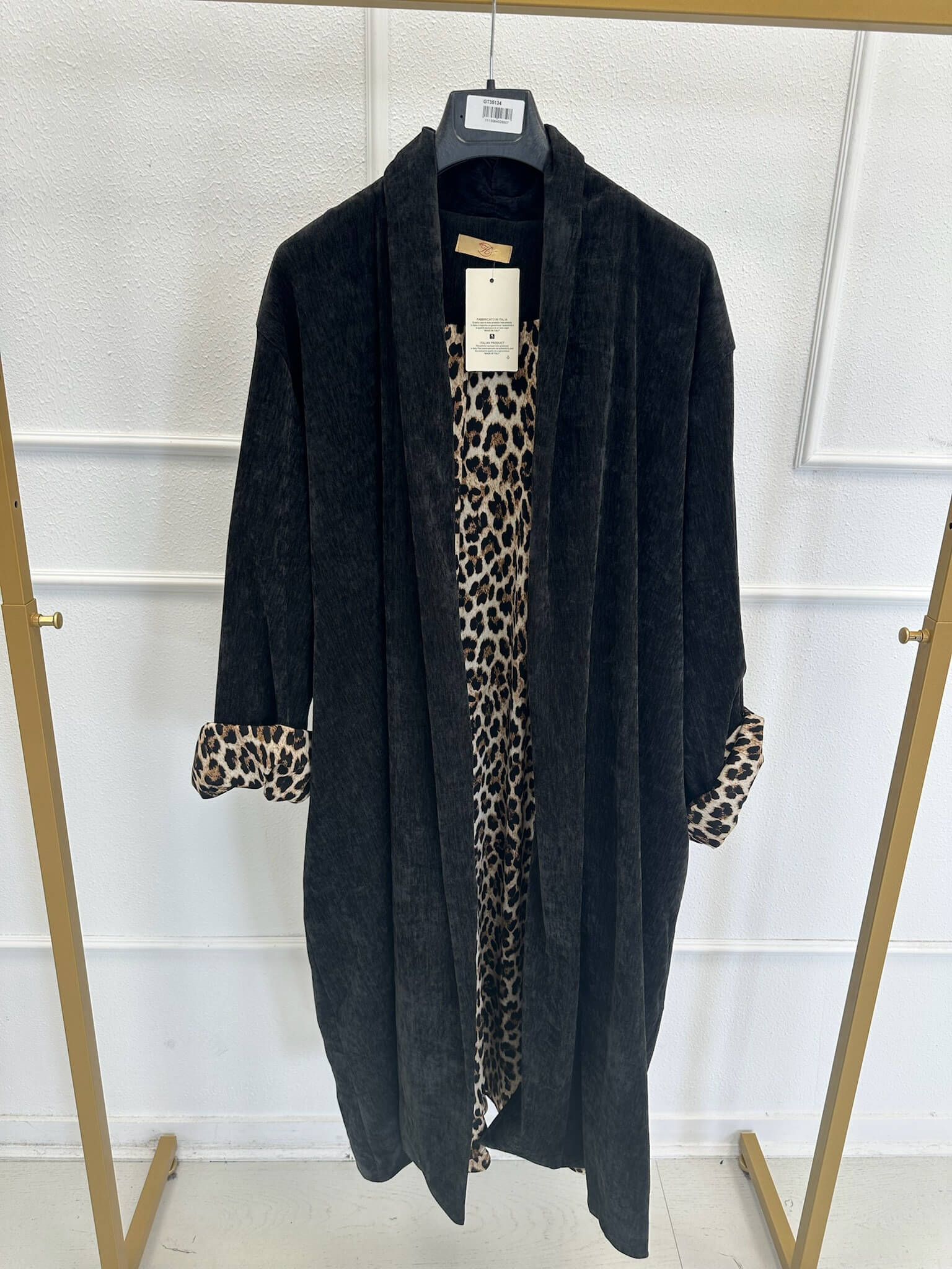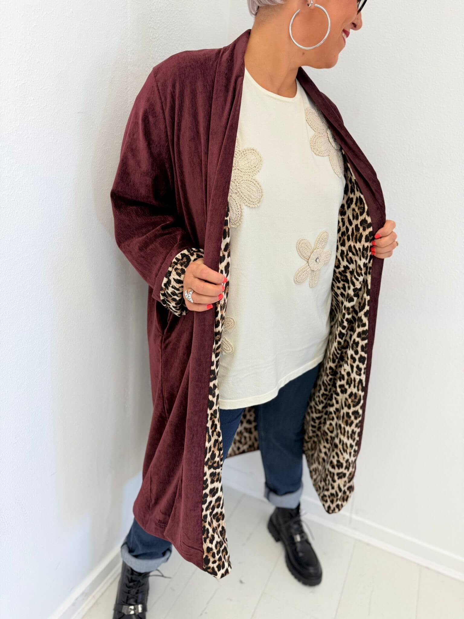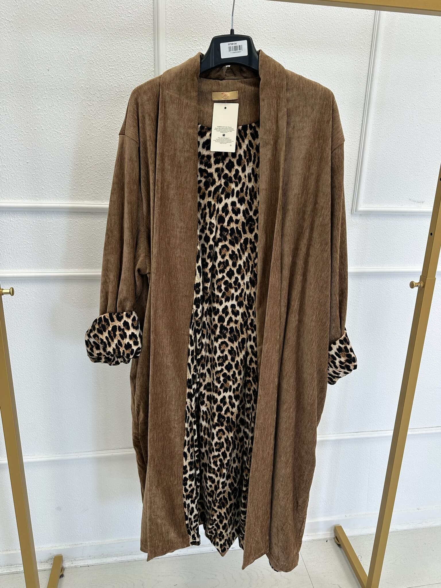 Veste longue fluide avec détails imprimé léopard
