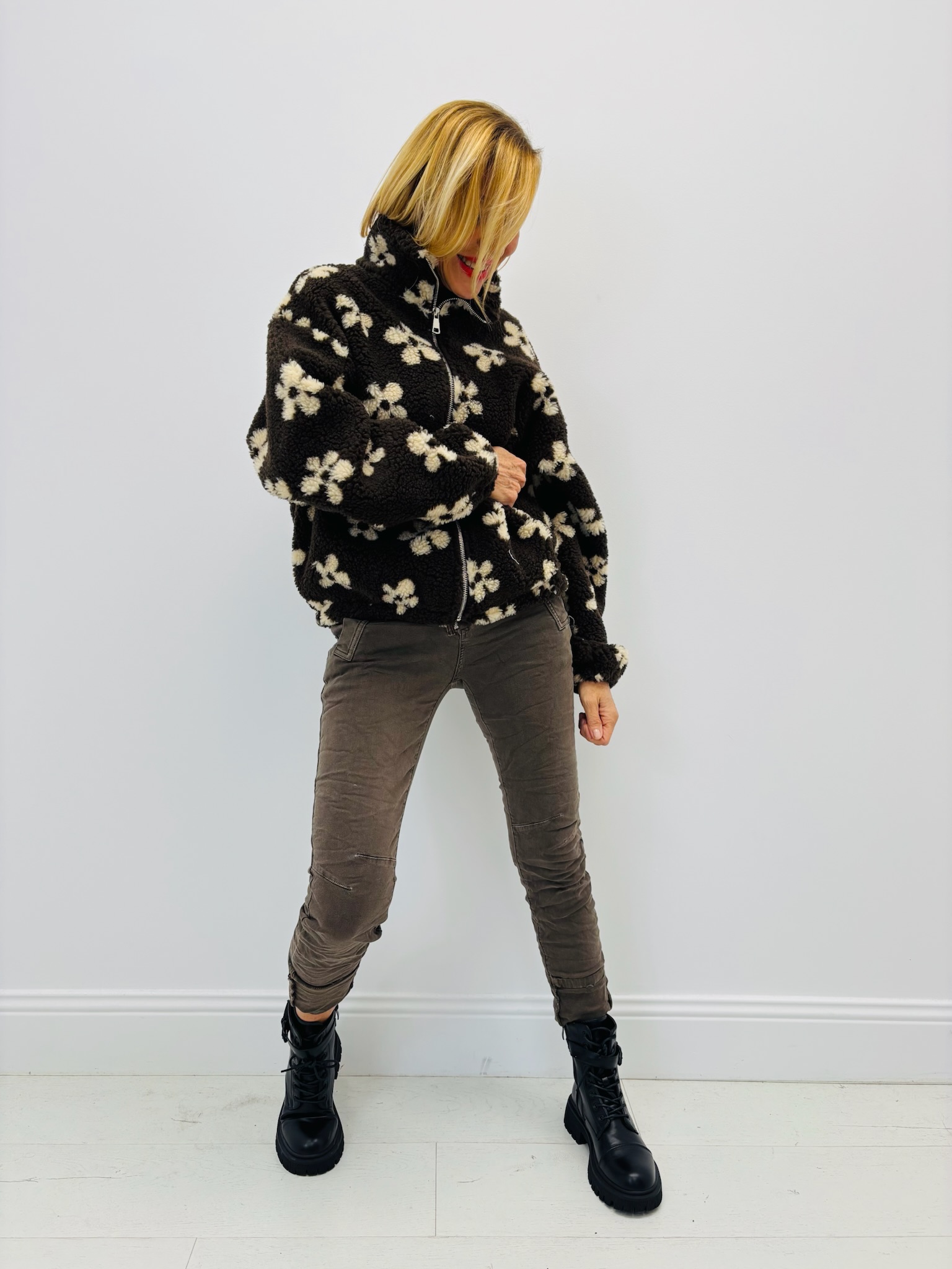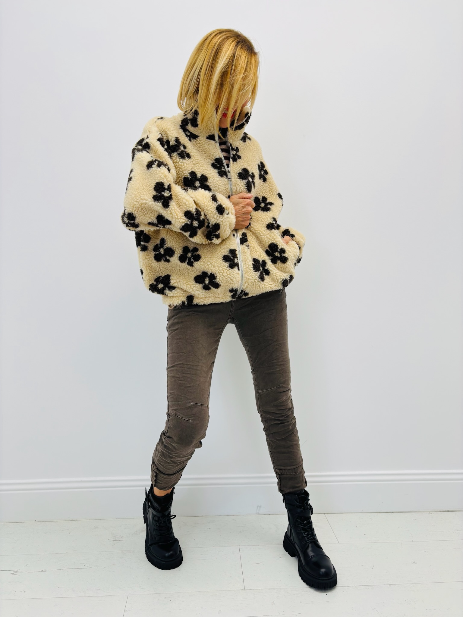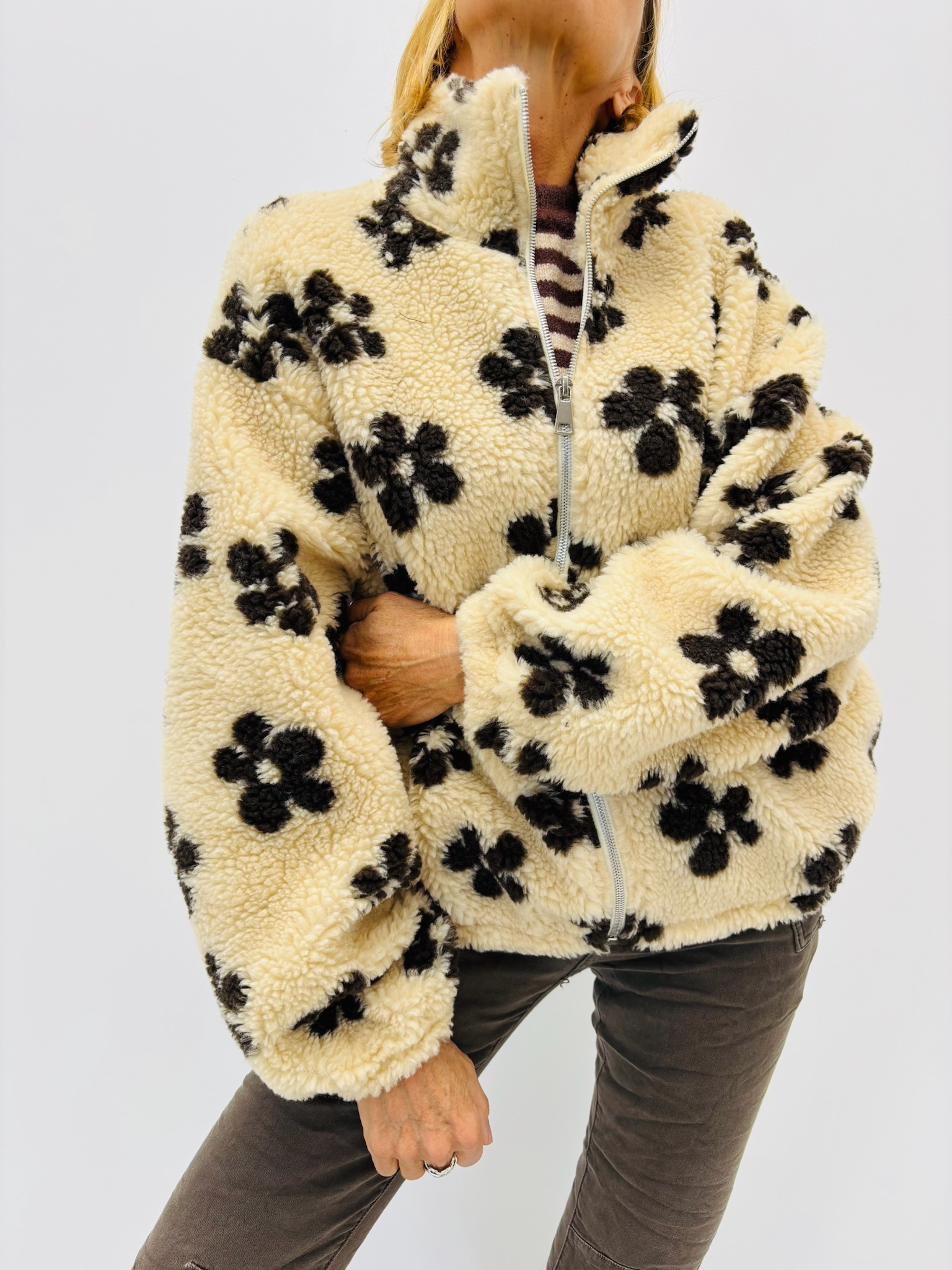 La veste cocooning qui fait rimer confort et originalité ! Confectionnée dans une matière effet mouton ultra douce, cette veste zippée séduit par son imprimé floral contrasté et sa coupe oversize. Parfaite pour un look décontracté et tendance.
