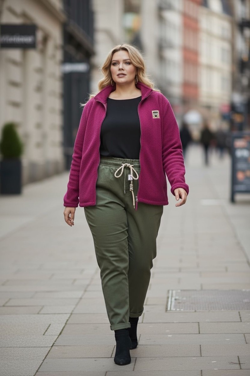 Veste polaire zippée + Pantalon jogging kaki – Confort premium & style urbain grande taille