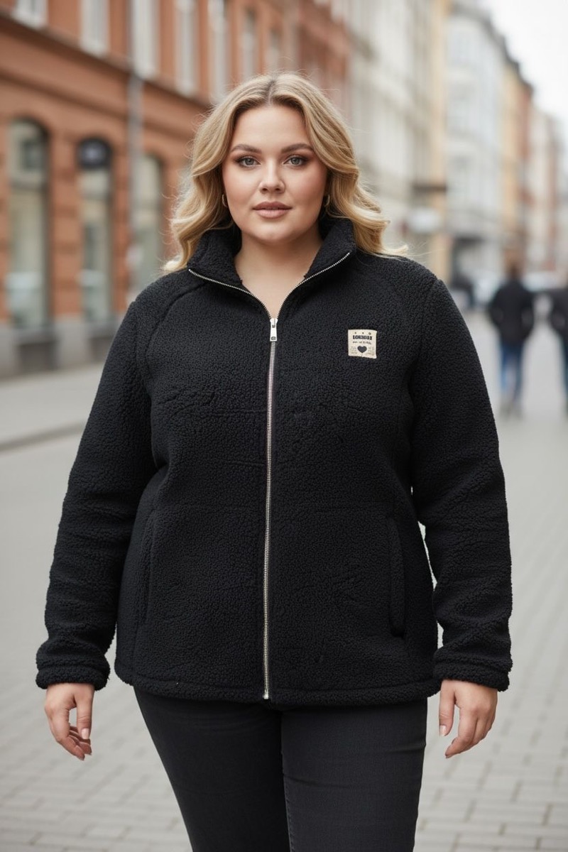 La veste en polaire épaisse façon teddy garde bien au chaud tout en apportant une touche sport-chic. Sa coupe droite grande taille offre une belle aisance, et le zip intégral permet de la porter ouverte ou fermée selon le style. On retrouve aussi un petit patch décoratif sur la poitrine pour une note streetwear discrète.