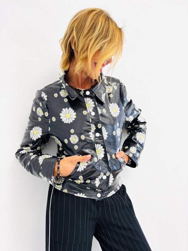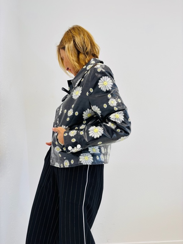 Craquez pour cette pièce forte de la saison signée Hippocampe, une veste en vinyle imprimé fleurs qui mixe style vintage et touche pop.