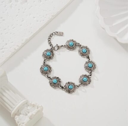 Bracelet Fleurs Acier inoxydable et pierres turquoise – esprit bohème chic
